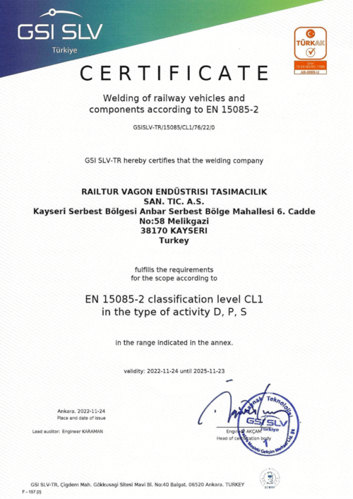 EN 15085 -CL1 (demiryolu araçları kaynak yeterliliği)